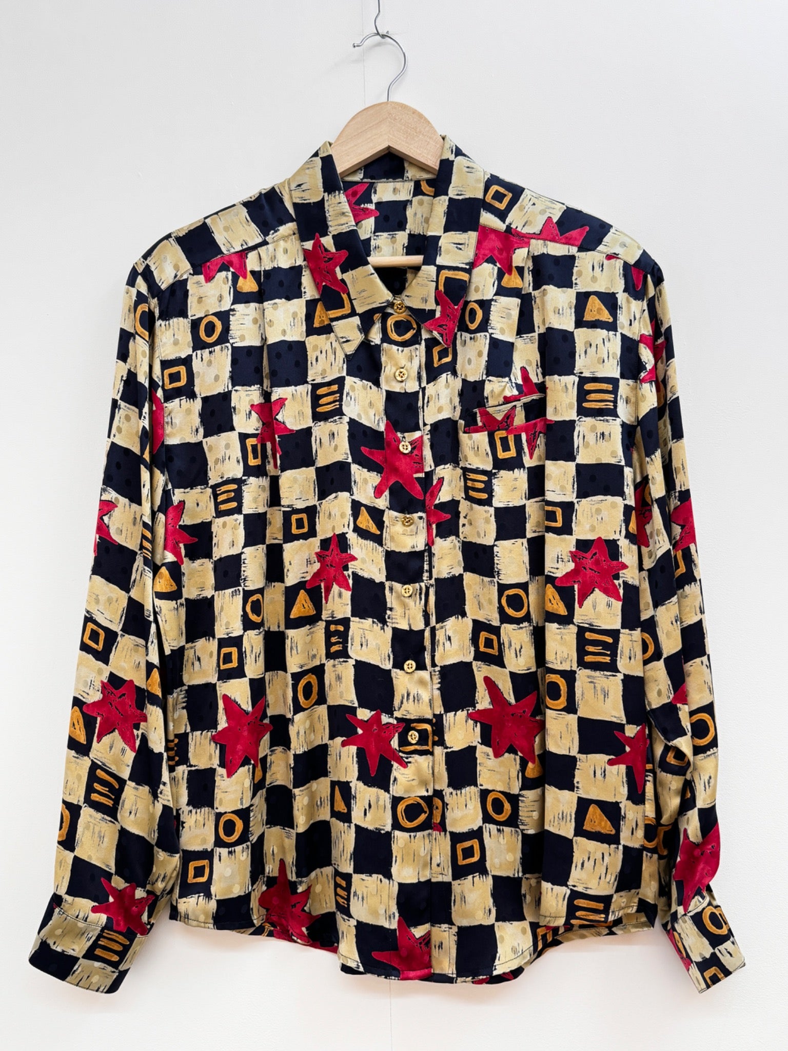 Vintage jaren 90’s Star Check zijde blouse