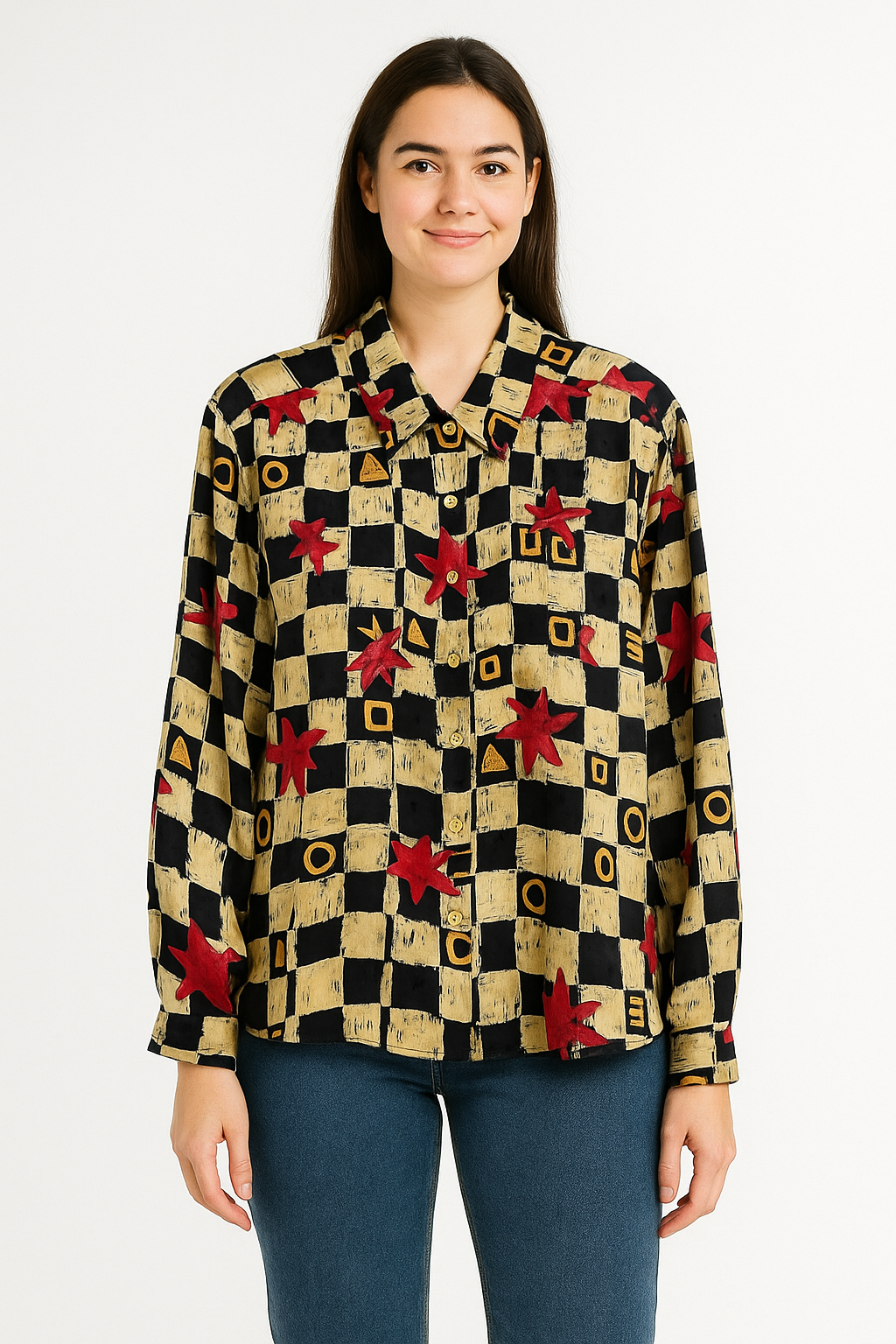 Vintage Blouse “Star Check” – 90s Feel