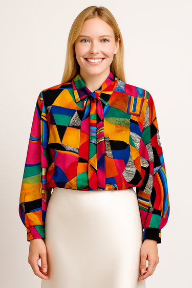 Stijltip: Stop de blouse gedeeltelijk in je broek en voeg chunky oorbellen toe voor de ultieme RetroLife look.
