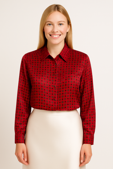 Stijltip: Stop de blouse gedeeltelijk in je broek en voeg chunky oorbellen toe voor de ultieme RetroLife look.